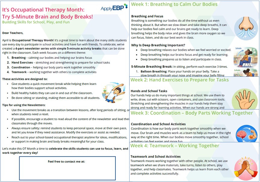 April is OT Month! Free 4-Week Classroom Brain and Body Break Newsletter