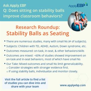 Want a Free 2-Page Handout that you can share with your Teachers & Paraeducators? Click here to join Apply EBP’s Facebook Discussion Group where you can download one from the group “Files” section. Email it to your colleagues, or use it for an in-service in your schools.