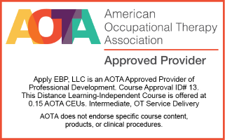 - Apply EBP, LLC is an AOTA-approved provider of CEUs. You will receive 0.15-0.2 AOTA CEUs for each webinar completed (see AOTA imprimatur for each included webinar below).